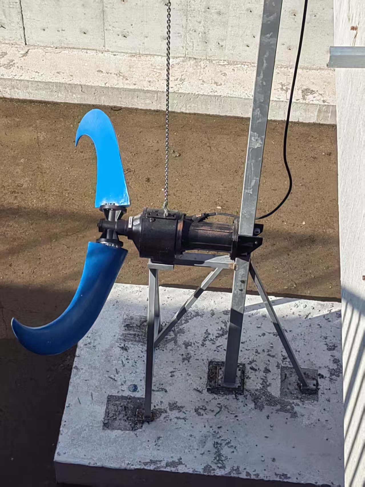 低速推流器适用于工业和城市污水处理厂曝气池和厌氧池,其产生低切向流的强力水流,可用于池中水循环及硝化、脱氮和除磷阶段创建水流等。潜水搅拌机的选型是一项比较复杂的工作,选型方案的正确与否直接影响到设备的正常使用,作为选型的原则就是要让搅拌机在适合的容积里发挥充分的搅拌功能,这个标准一般可用流速来确定。根据污水处理厂的不同工艺要求,潜水推流器选型的流速保证在0.15~0.3m/s之间,如果低于0.15m/s的流速则达不到推流搅拌的效果,如果超过0.3m/s的流速则会影响工艺效果且造成浪费。所以在选型前,要确定潜水推流器运用在什么场所,如:污水池、污泥池还是生化池;其次是介质参数,如:悬浮物含量、温度、PH值等;还有水池的形状,水深甚至安装方式等都将对选型产生影响,考虑到节能因素,影响到用户今后运行成本。搅拌机所需配套功率是按容积大小、搅拌液体密度和搅拌深度而确定,根据具体情况采用一台或多台推流器。