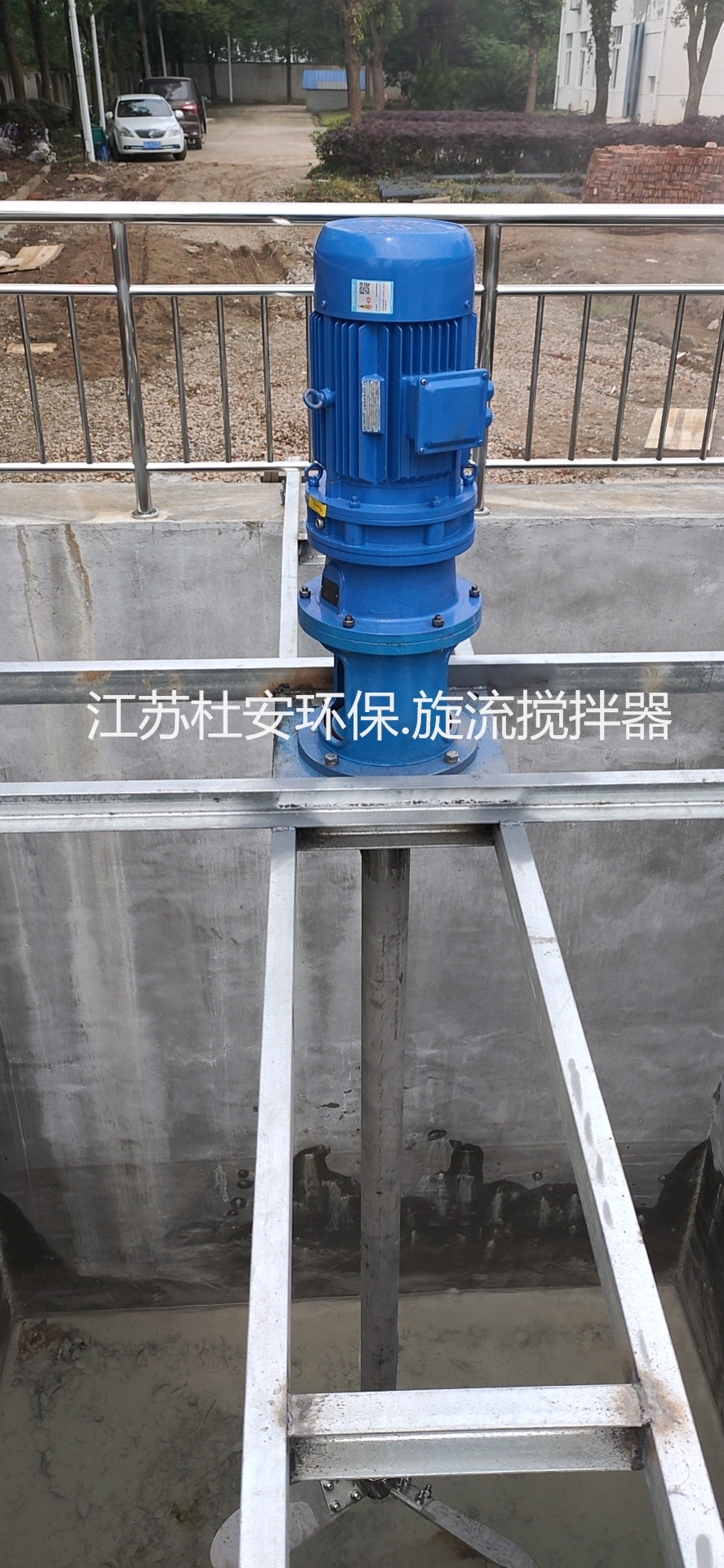 搅拌机驱动装置安装在反应池的顶部,电动机和减速机间采用法兰连接,以便于安装和维护。